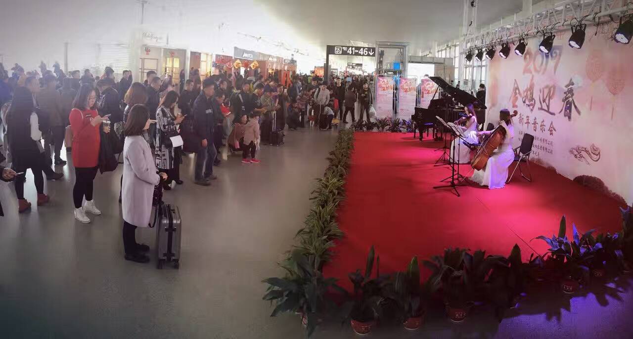 “春運暖途”音樂巡演將持續(xù)到1月26日,樂團根據(jù)旅客的欣賞需求,安排了弦樂重奏、鋼琴獨奏、動感小提琴等形式多樣的音樂演出活動,在春節(jié)前夕再獻音樂佳宴。