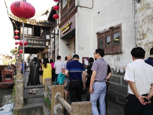 5月26日晚間,組織企業(yè)家在文化商業(yè)街“山塘街”采風(fēng)。蘇州山塘街是國(guó)家AAAA級(jí)景區(qū)、中國(guó)歷史文化名街,曾是明清時(shí)期中國(guó)商貿(mào)、文化最為發(fā)達(dá)的街區(qū)之一,被稱之為“老蘇州的縮影、吳文化的窗口”。企業(yè)家在“神州第一古街”尋找靈感。